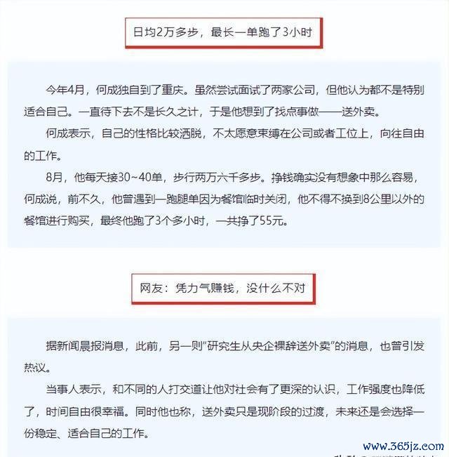 [7] 长篇报说念——《专科生逆袭读了研后去送外卖:还在工场活水线干过,每天走着接单,这选拔跟学历小数关系都莫得》